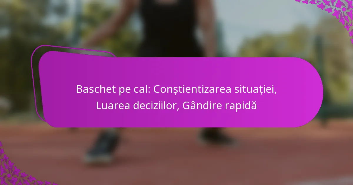 Gândirea rapidă în baschetul pe cal implică abilitatea de a lua decizii rapide și eficiente, menținând în același timp conștientizarea situațională. Tehnicile pentru îmbunătățirea acestei abilități includ exerciții care se concentrează pe timpul de reacție, strategii de luare a deciziilor și exerciții de conștientizare situațională adaptate dinamicii jocului.